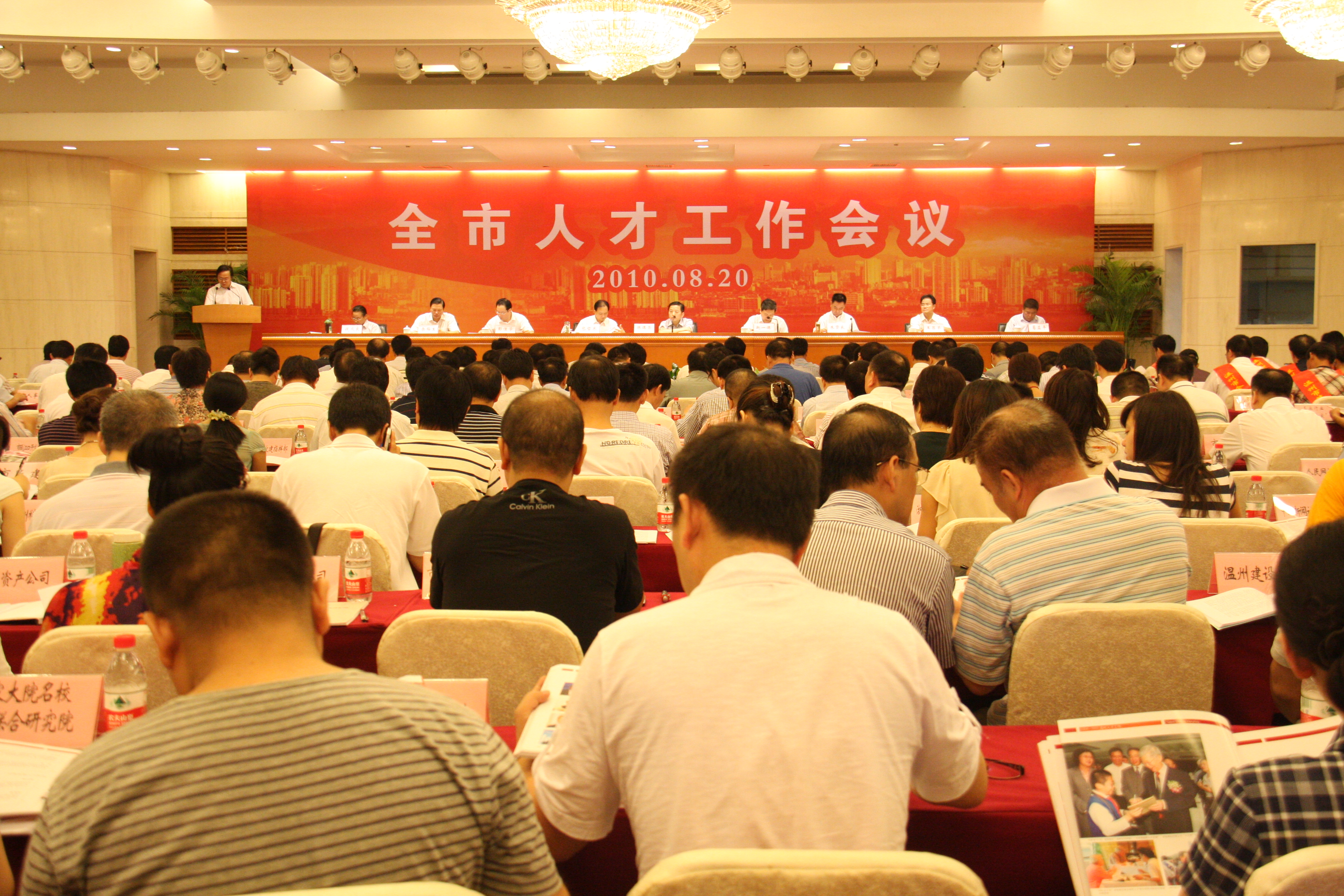 副省长、市委书记陈德荣在全市人才工作会议上指出,各级党委政府要牢固树立人才优先发展的思想,把人才强市摆上重要的战略位置,以优良的环境集聚人才,以一流的人才提升产业,以人才事业大发展推动温州经济社会转型发展、创新发展、科学发展。