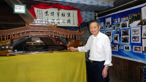 “他是廊桥展厅的缔造者,他是廊桥文化的传播者。十三年的无私奉献,传递着对廊桥最深切的爱、对故土最真挚的情。退而不休,余热不减,书写火红绚丽的晚年……”这是2014感动温州十大人物颁奖典礼上,组委会给“廊桥老人”周万巩的颁奖词。从幕后走到台前,他说:“我只希望,我们的廊桥文化能发扬光大。”