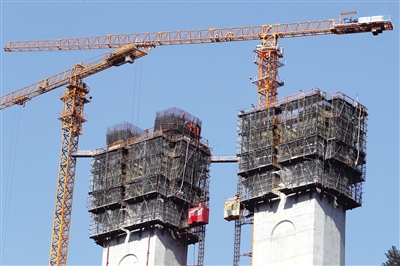 记者在现场看到,山谷处的桩基深嵌入岩石,有50余层楼高的两侧桥墩已拔地而起。“洪溪特大桥提前40多天先后完成了下塔柱、中塔柱施工,目前高度达120米左右,为明年顺利通车打下了坚实基础。”张仲勇自豪地说。事实上,在实际建设过程中,难度比他们预想的还要大。由于断裂破碎带、软弱土等特殊地质,实际开山量达13万方,远超原计划1.5万方的8倍,最终,桩基嵌入地下岩石深度达40米。为了达到技术要求,承台浇筑时连续作业了28个小时,用掉90吨冰块促进混凝土块降温。
