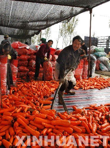 资料图片:10月10日,忻州市五寨县南峰乡前所村农民在将胡萝卜装袋。山西省忻州市五寨县是一个传统农业县,也是国家级贫困县。近年来,该县因地制宜,发展胡萝卜、土豆种植,产出的胡萝卜和土豆个头大、质量好,远销广州、四川等地,已成为当地农民主要经济来源。今年雨水充足,当地的胡萝卜、土豆喜获丰收。新华社记者彭洋摄