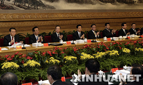 10月17日,中国共产党第十七次全国代表大会主席团在北京人民大会堂举行第二次会议。胡锦涛、吴邦国、温家宝、贾庆林、曾庆红、吴官正、李长春、罗干等出席会议。新华社记者兰红光摄