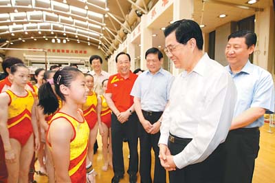 7月23日,胡锦涛来到国家体育总局训练局看望运动健儿。