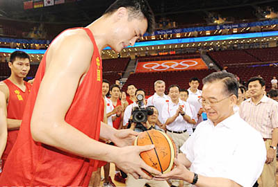 8月3日,温家宝来到五棵松奥林匹克篮球馆,看望