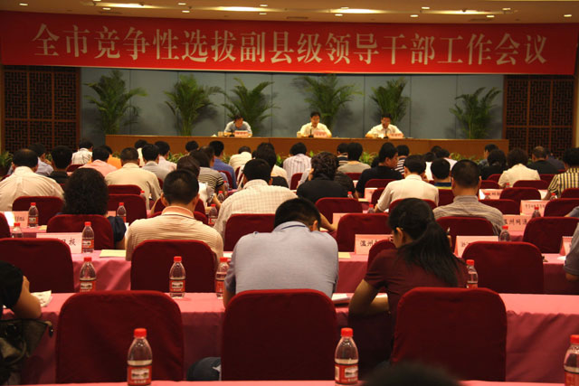 6月2日,全市竞争性选拔副县级领导干部工作会议召开,拉开了新一轮大规模竞争性选拔领导干部工作的序幕。中共温州市委常委、组织部长王昌荣出席会议并作了动员讲话。市委组织部副部长杜建平主持会议,市直属机关、企事业单位党委(党组)分管政工人事负责人,大中专院校负责人及组织人事部门负责人,中央、省属驻温单位负责人,各县(市、区)委组织部分管部长及职能科室负责人参加会议。