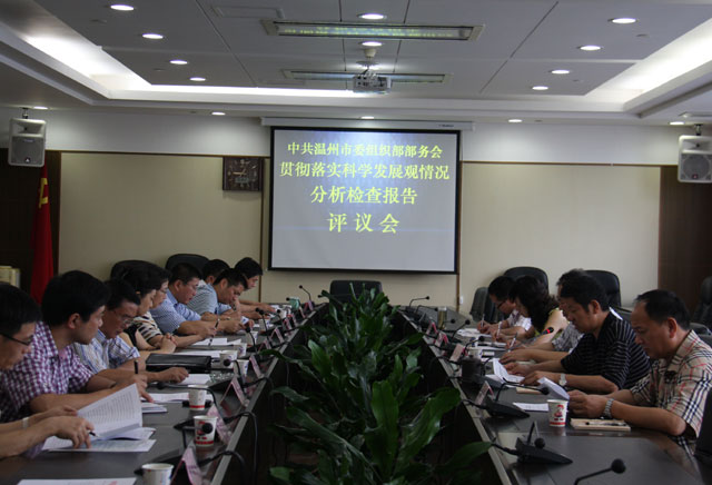 按照市委关于深入学习实践科学发展观活动的部署,7月17日上午,中共温州市委组织部召开部务会贯彻科学发展观情况分析检查报告评议会。会议由常务副部长白一舟主持。会议邀请了基层党务工作者、县(市、区)委组织部长、市直机关组工人事干部、“两代表一委员”、拔尖人才、部机关离退休老同志和中层干部等11名代表参加评议。市委检查指导二组王培德组长等二人应邀到会指导。