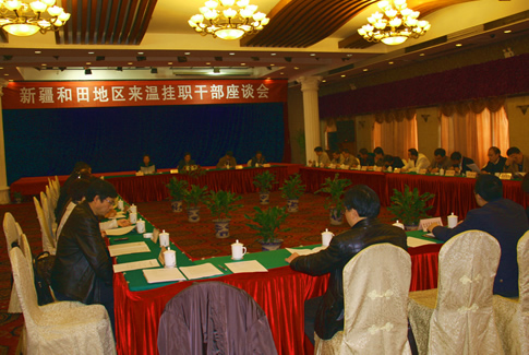 3月22日上午,新疆和田地区来温挂职干部座谈会召开。市委常委、组织部长王昌荣强调,为新疆选派干部和接收新疆挂职干部,是省委加强对口援疆工作,促进两地交流,增进两地人民之间了解和友谊的重要举措。市委组织部和各接收单位要加强服务,热心帮助,为挂职干部创造良好的工作生活环境。同时,希望挂职干部要把温州作为第二故乡,以主人翁的姿态投身温州的经济社会发展。