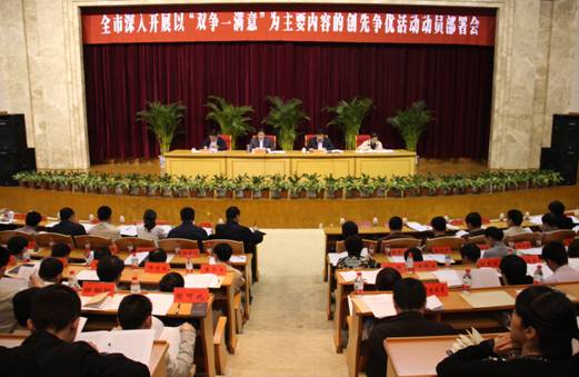 全市创先争优活动由市委组织部、市委宣传部共同组织开展,将一直持续到党的十八大召开前。“双争一满意”即争做创业敬业先锋、争创服务管理品牌、让党员和群众满意。活动中,各地各单位将从实际出发,围绕“实施五大战略、推进富民强市”目标,组织开展“服务素质提升”、“岗位创业奉献”、“城乡结对共建”、“爱心志愿服务”、“组织设置优化”、“服务平台拓展”、“服务品牌创建”等七大行动。到2012年在全市各个领域、行业、层面培育一批领导班子好、党员队伍好、工作机制好、工作业绩好、群众反映好的先进基层党组织,培育一批服务意识强、服务能力强、服务成效好的优秀共产党员,并在此基础上创建200个基层党建工作市级示范点。