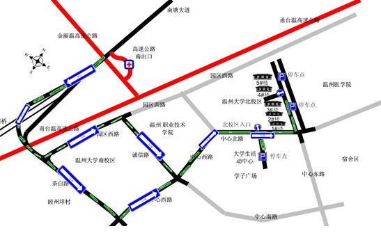 三、温州高速(南)出口至考点行车线路示意图及考点停车场位置标注如下,供你参考。
