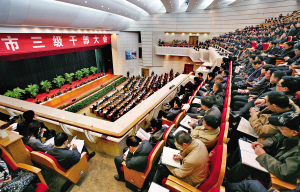 市委副书记、市长赵一德主持会议并就贯彻会议精神提出要求。陈笑华、包哲东、朱贤良等市四套班子领导以及全市各级干部共1360余人在市主会场参加会议。会议表彰了2010年全市重点工作先进集体和先进个人。11个县(市、区)和3个功能区以及市发改委、市委农办作表态发言。