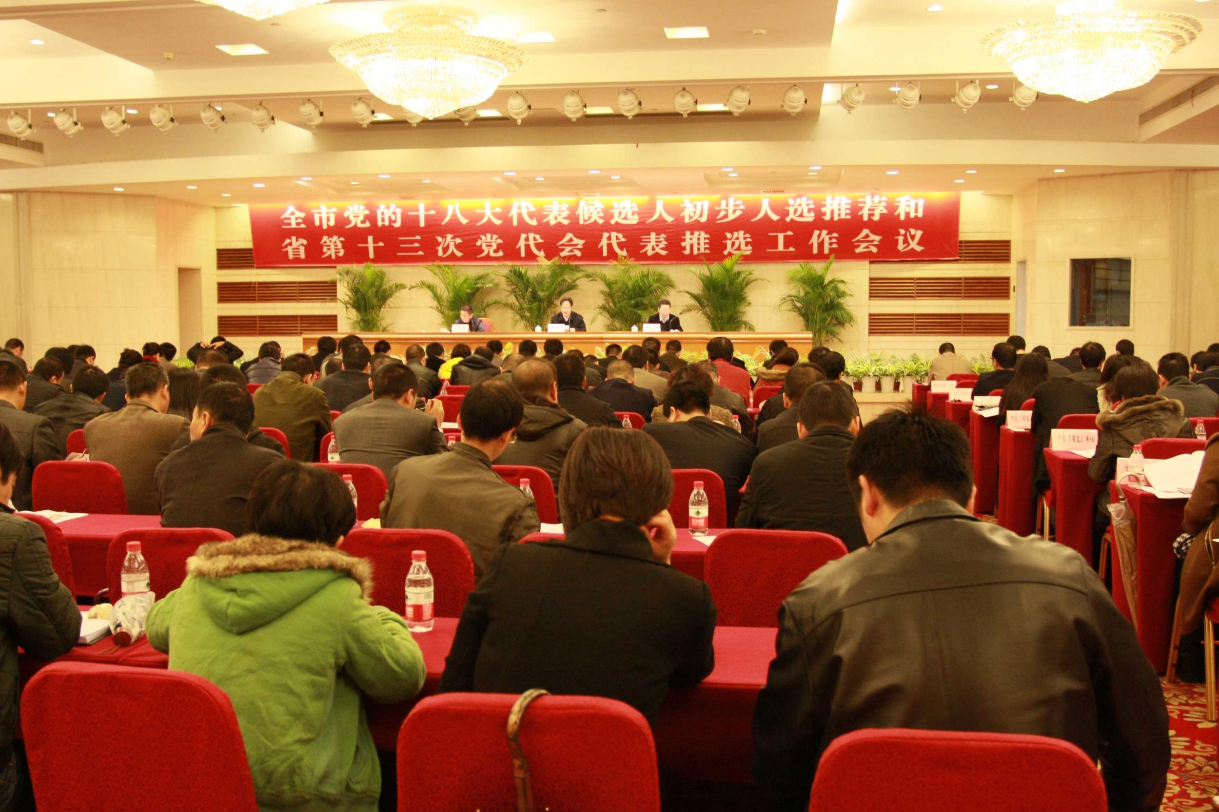定于明年下半年召开的党的十八大、明年6月召开的省第十三次党代会,是全党、全国、全省政治生活中的一件大事。12月8日,市委召开会议,对我市党的十八大代表候选人初步人选推荐和我市出席省第十三次党代会代表选举工作进行全面部署。