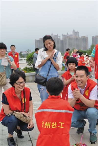 市民政局党员义工带着福利院孩子,畅游市区公园。