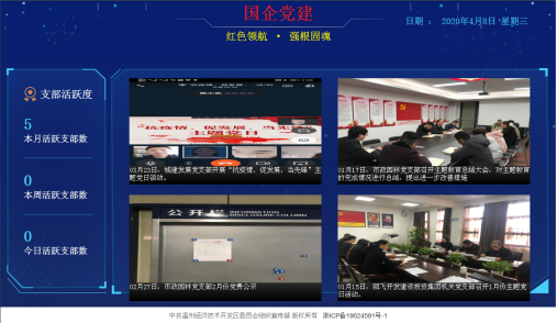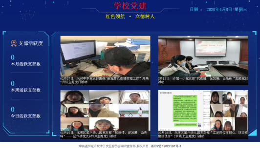 就这样,经开区智慧党建平台的轮廓在一次次的座谈交流、分析研讨中逐渐清晰起来。据了解,经过多部门的共同努力和联通公司的精心研发,该平台已开设“线上监管、精准考评、一体指挥、云端存储、互学互比”等功能,一期于2019年7月1日正式上线,二期于2020年1月交付使用。经过不断地升级完善,该平台目前已显雏形,已具备电脑PC端、手机微信公众号端、室内大屏显示端等3个端口,在半年多的试运行中,得到了广大基层党组织和党员干部的一致好评。