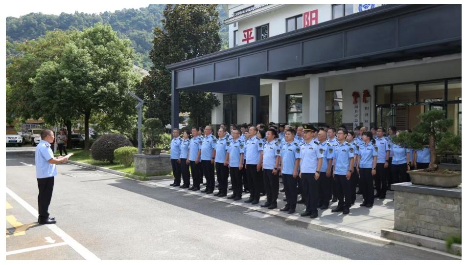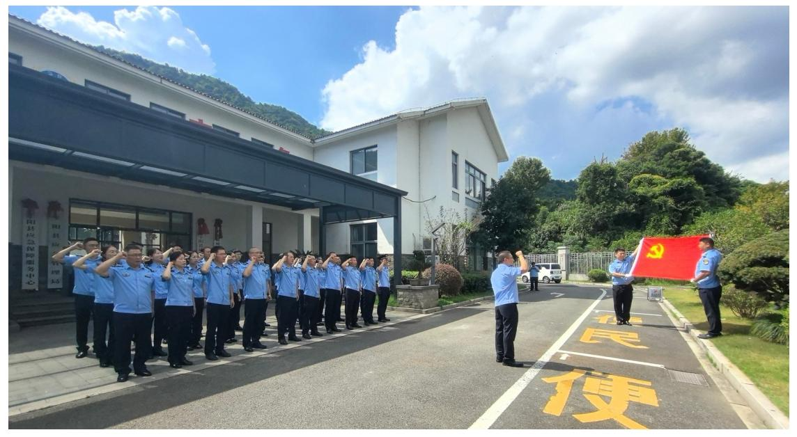 9月3日上午8时30分,平阳县应急管理局机关小广场上,60名党员干部身着统一制服,胸前党徽熠熠生辉,整齐列队、身姿挺拔,静候升旗仪式开始。